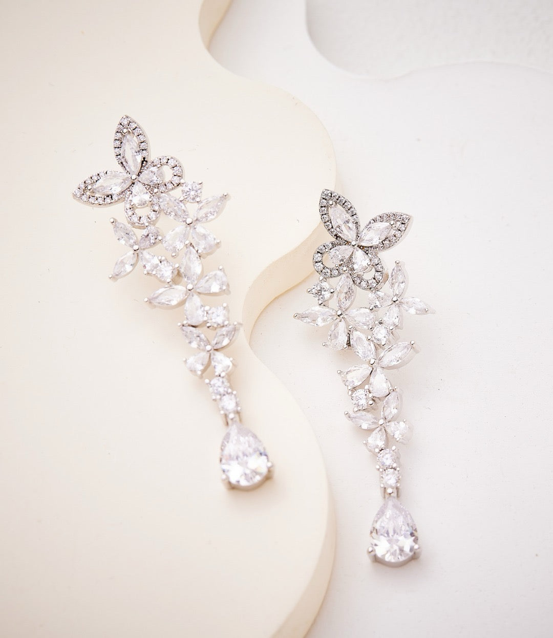 Designed for the sophisticated woman who appreciates the finer things in life. These earrings are perfect for bridal occasions, gala events, and anywhere where making an unforgettable impression is desired.