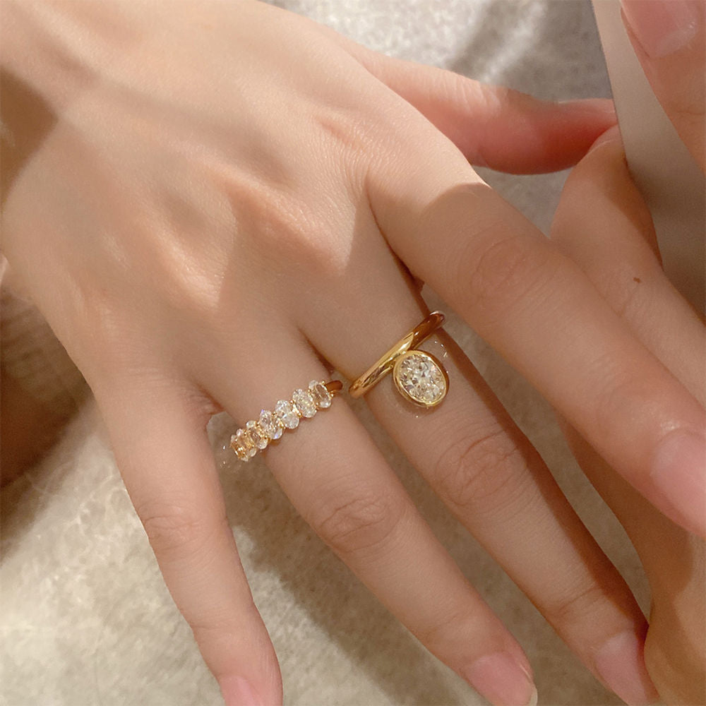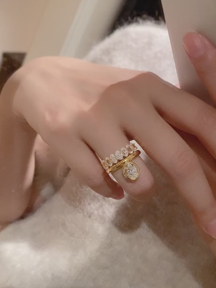 Elevate your ensemble with the Eternal Shine Vermeil Oval-Cut Eternity Ring. Each band, with its AG925 stamp, promises the highest quality sterling silver base, overlaid with a substantial layer of 14k recycled gold. This eternity ring is adorned with a series of dazzling oval-cut gemstones, offering an endless loop of sparkle. It’s not just a ring, but a commitment to ethical luxury, combining recycled materials with handpicked gems to create a piece that’s kind to the Earth and stunning on your hand.